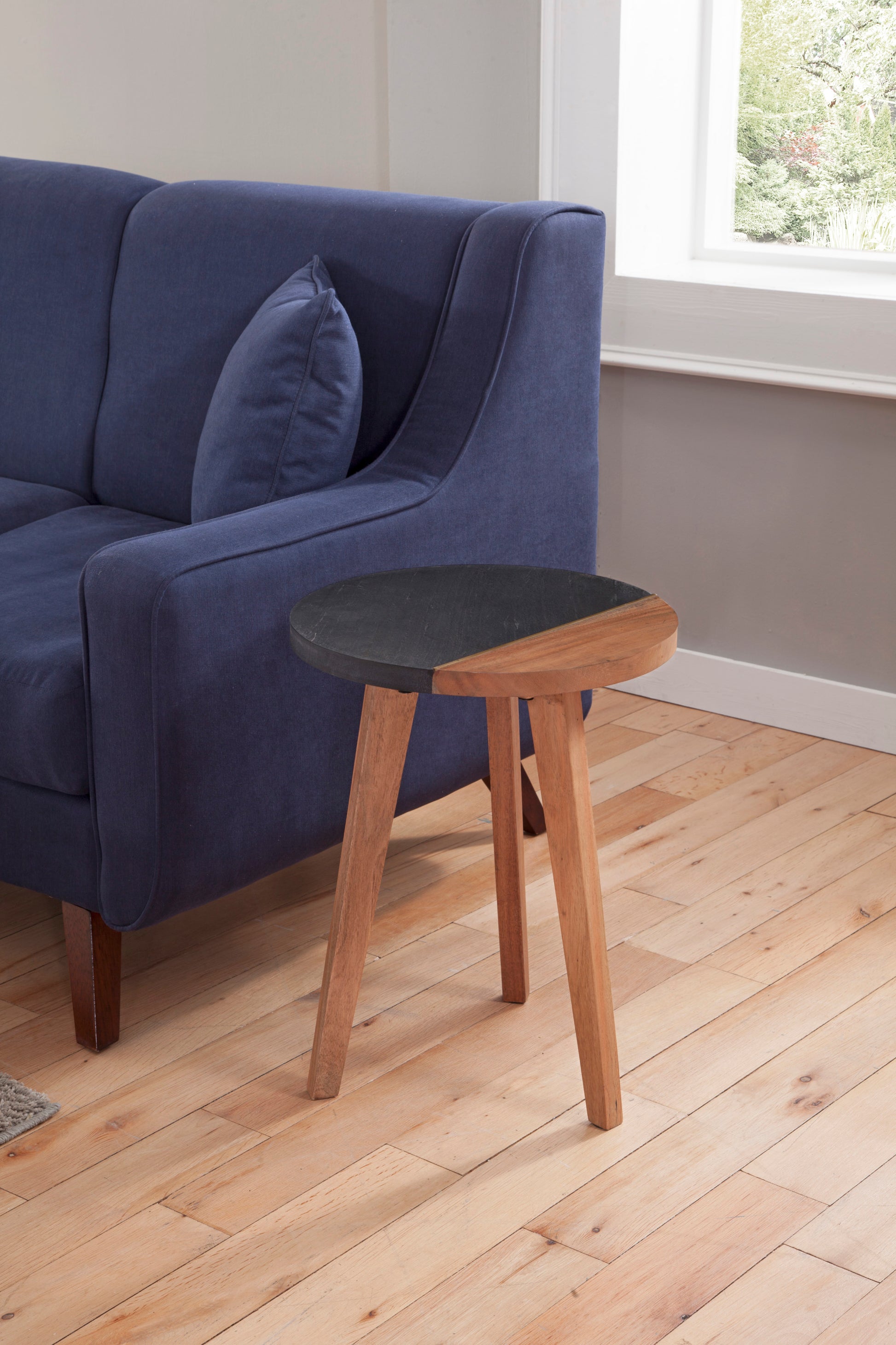 Add some flair to mid-century modern style with the Caspian occasional collection. These occasional tables feature linear splayed legs and a stunning top featuring natural acacia wood with slate bordered with a brass inlay for that extra little pop. And the natural finish on the acacia allows the natural graining and character of the wood shine shine through in marvelous detail.