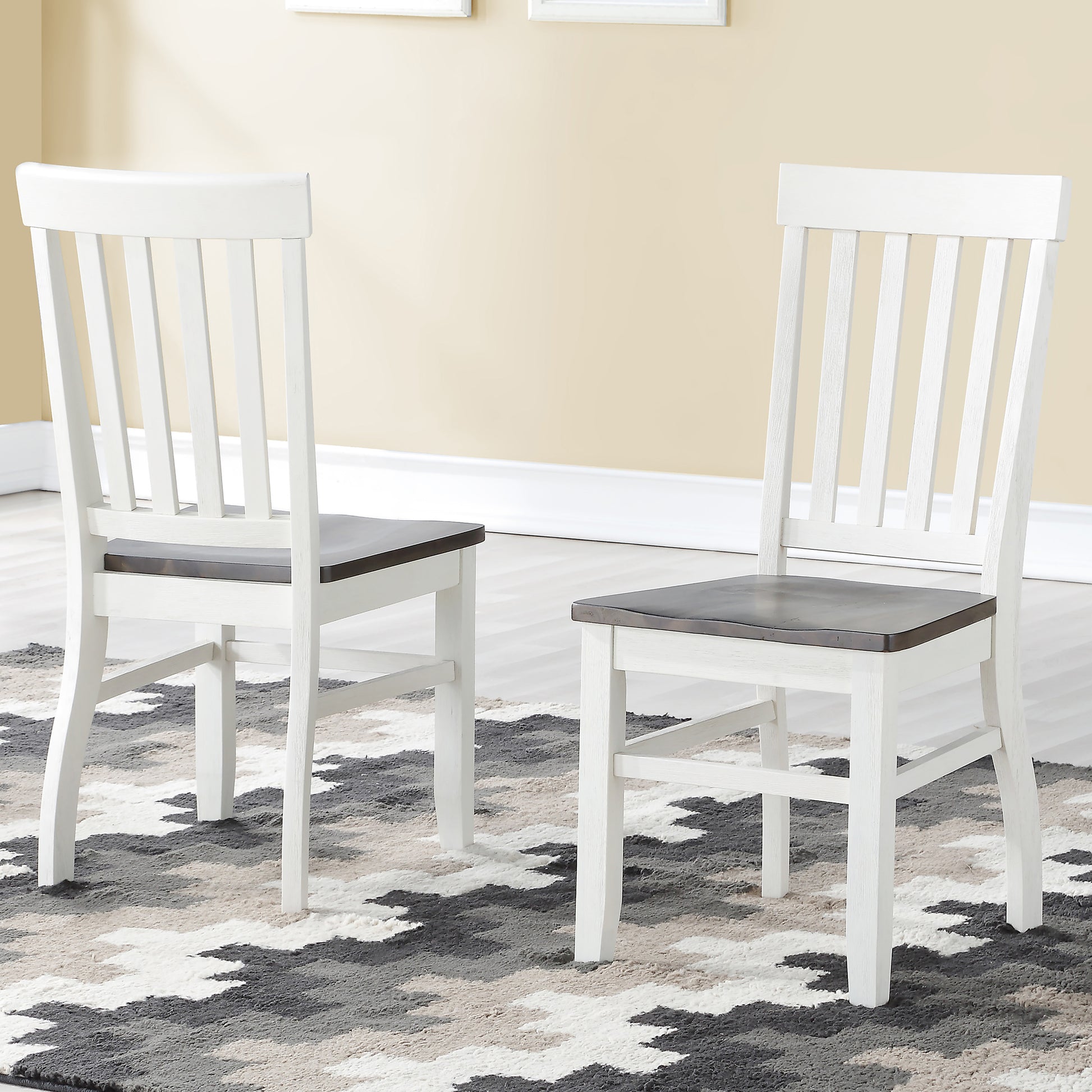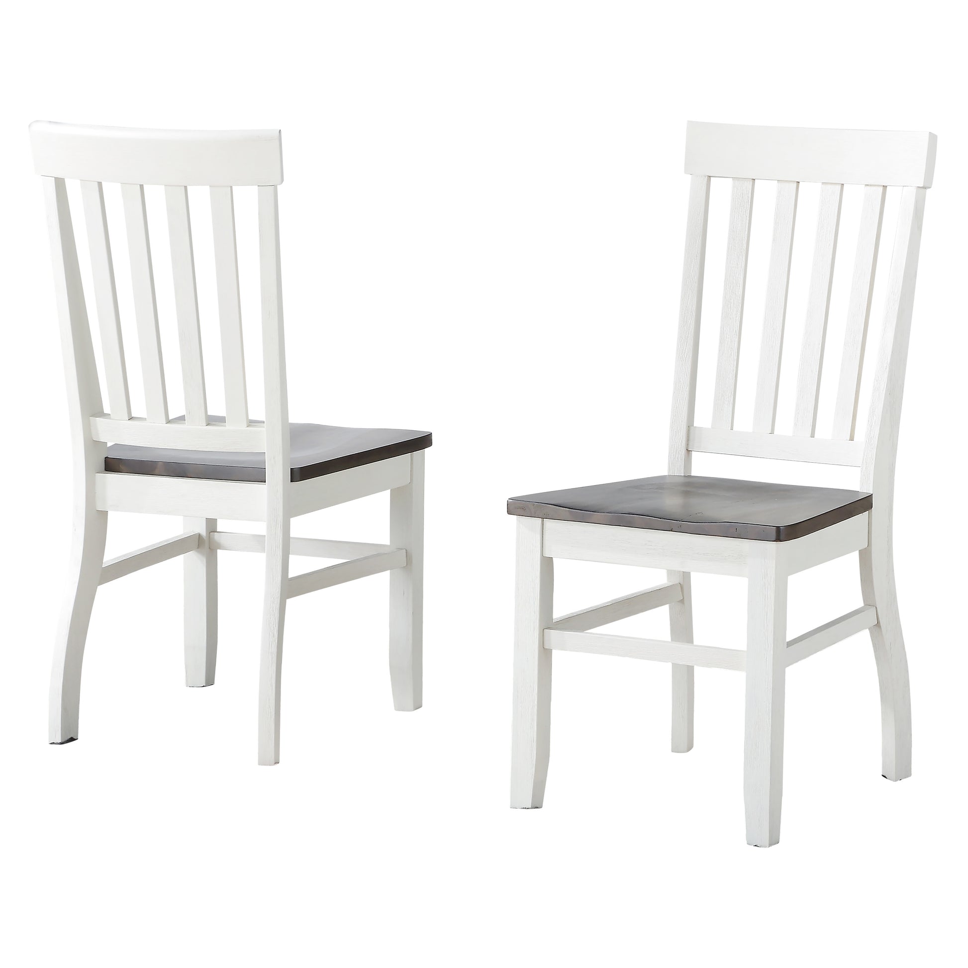 Caylie is modern farmhouse dining in a package sure to fit comfortably in any space in your living area. Two-tone ivory and driftwood finish pairs beautifully with wooden schoolhouse chairs scooped for a more comfortable seat. The clean lines combine with traditional elements to create a transitional style that will fit well in virtually any decor.