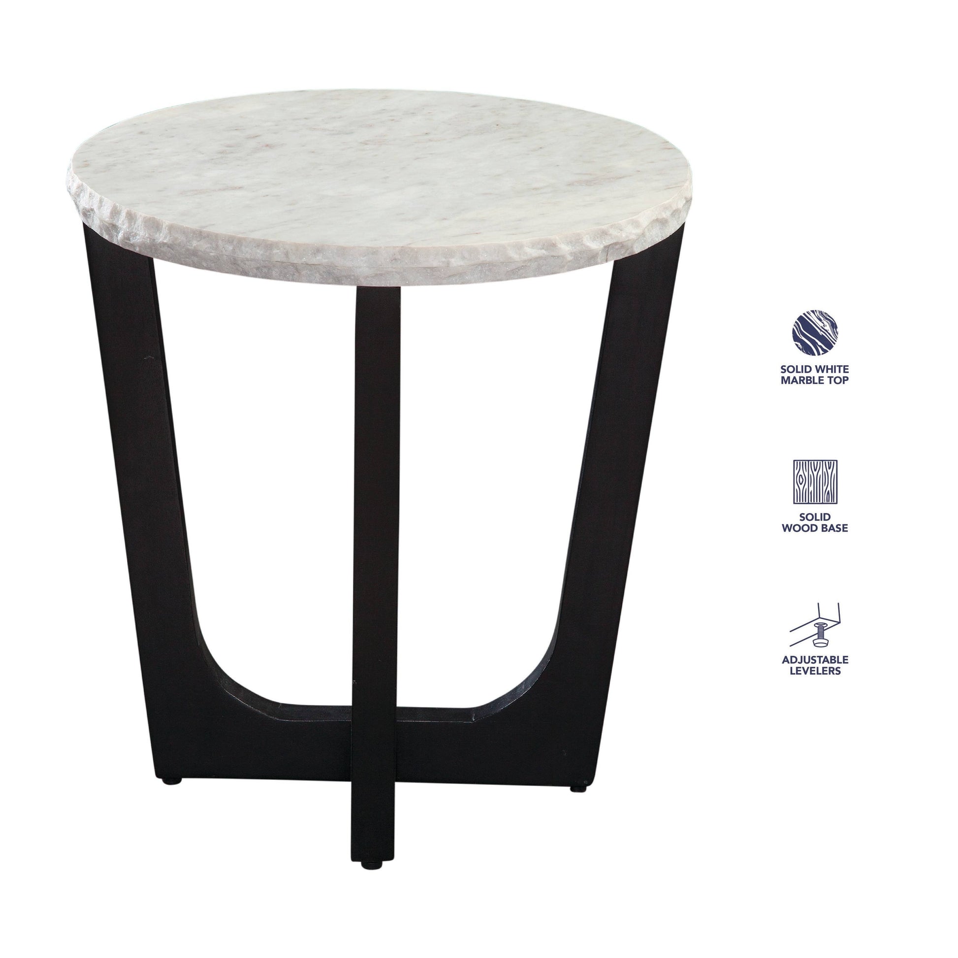 The Chrissy End Table blends modern design with natural elegance, making it a stylish accent for any space. Expertly crafted, it features a 30mm solid white marble top with a raw, live edge, combining a smooth polished surface with rugged, chiseled texture for striking contrast. Each marble top is one-of-a-kind, showcasing unique veining and natural variations that add to its organic charm.