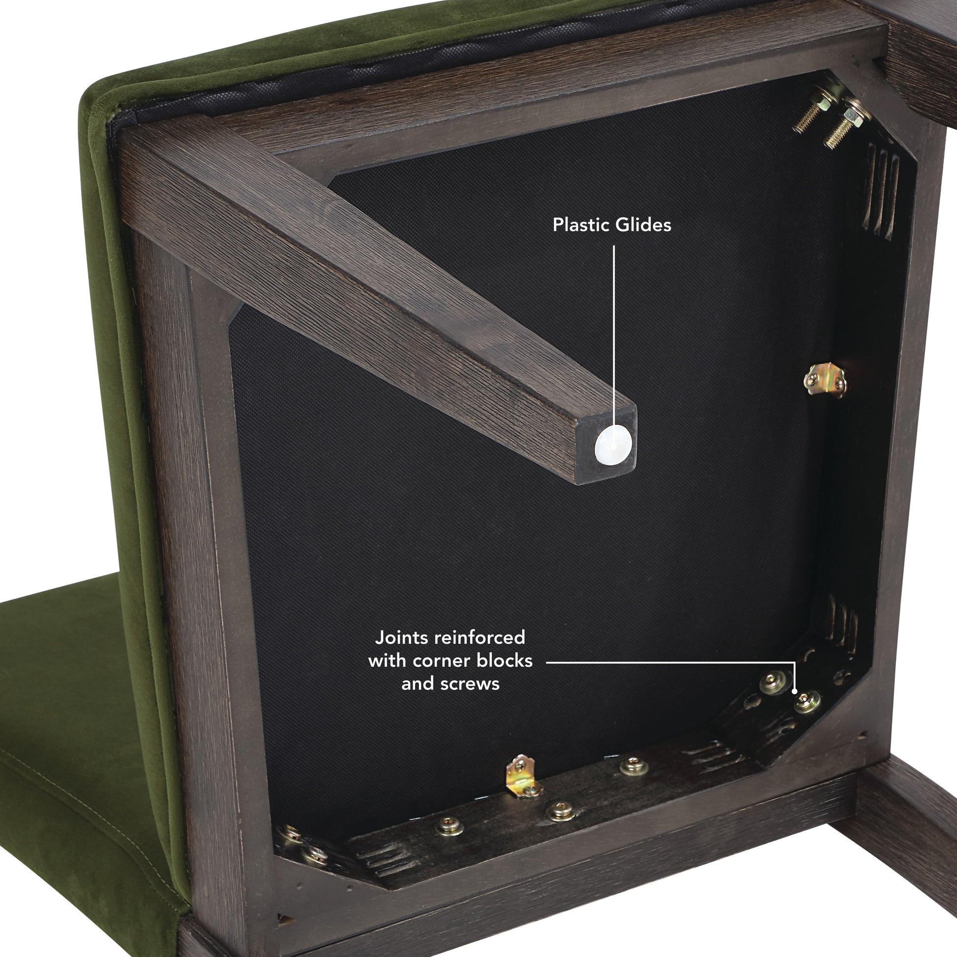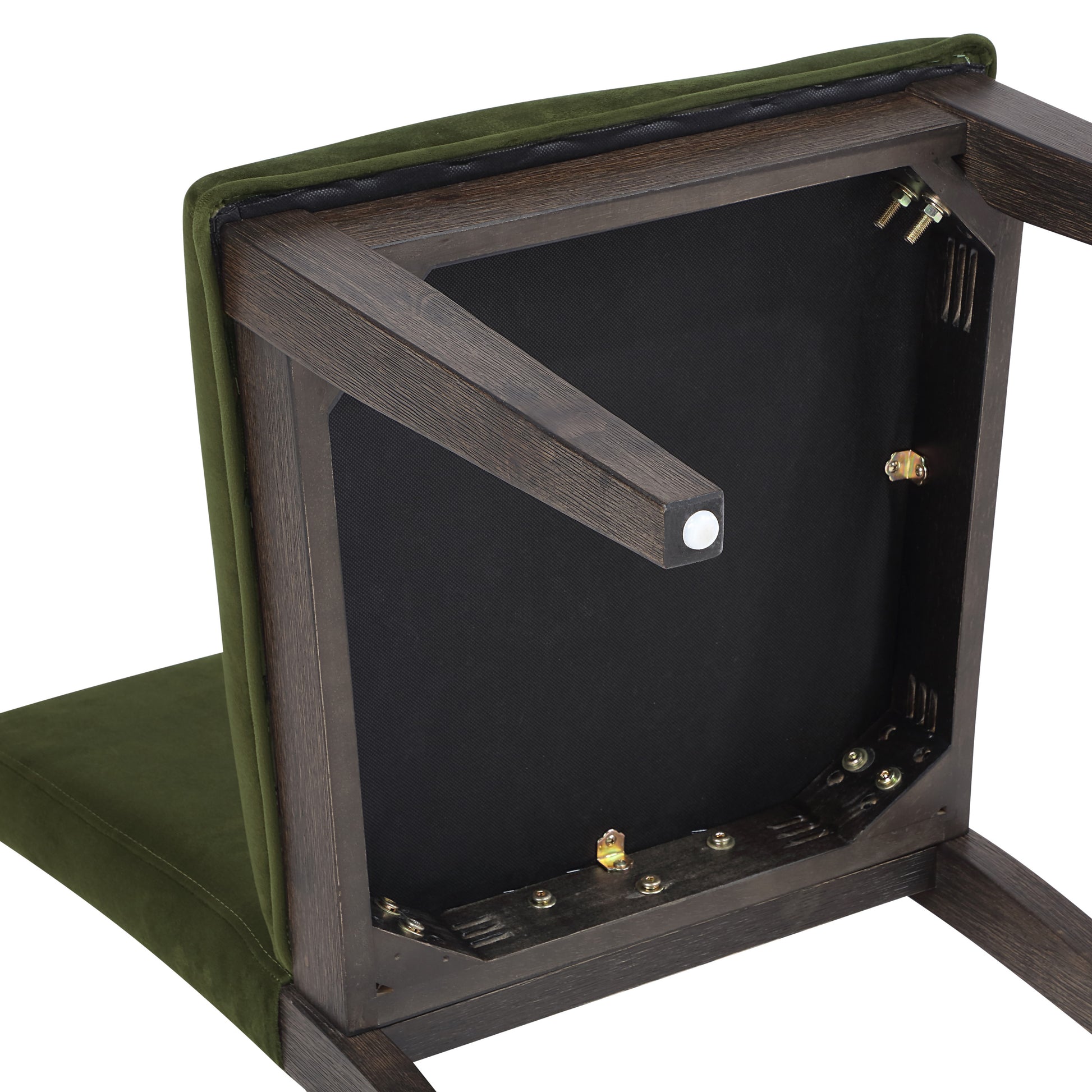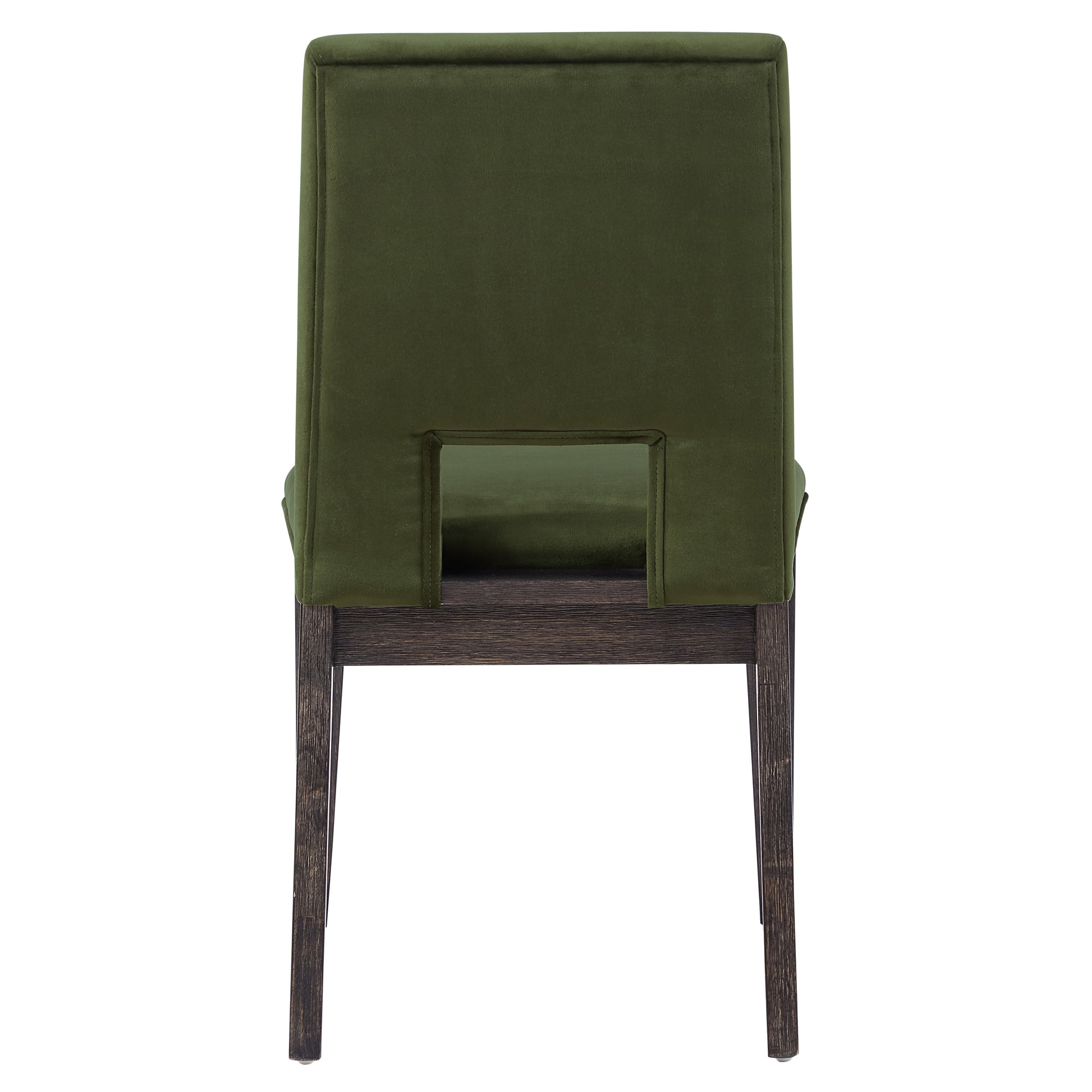 The Evan Side Chair, crafted from plush emerald-colored velvet, balances comfort and style. Its sleek, walnut-finished solid wood legs complement the full escape back, making this chair a striking addition to any dining table or as a standalone piece. The butter-soft velvet upholstery adds a touch of luxury, while the gently tapered legs complete its elegant design. Whether used for dining, in the office, or as an accent chair, the Evan Side Chair offers both sophistication and comfort, making it a versatile choice for any space.